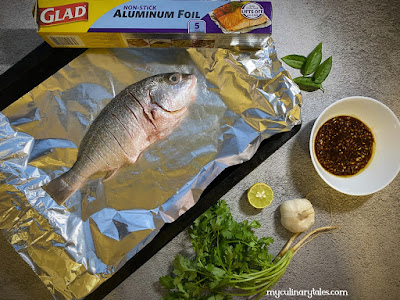 Cover the foil over the fish such that it doesn’t touch the fish top and allows